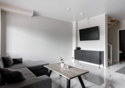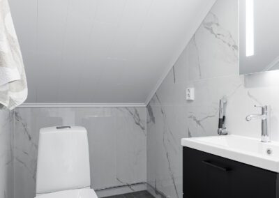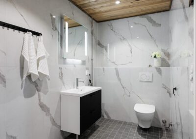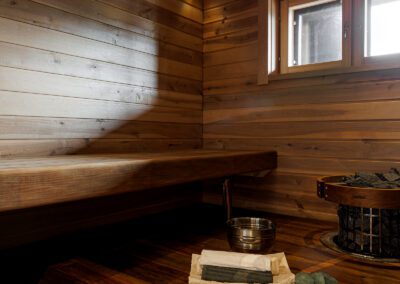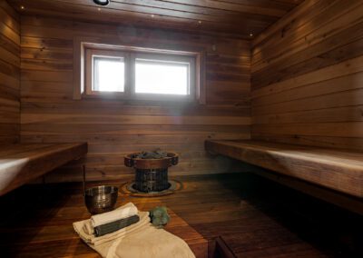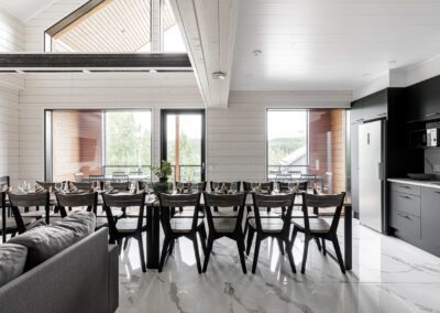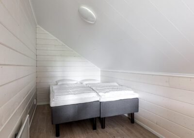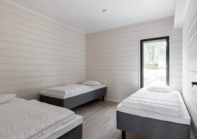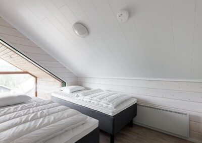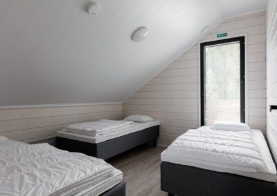 Huviloissa mahtuu majoittumaan reilusti isot yritysporukat sekä ryhmät, sillä nukkumapaikkoja on yhteensä 23 hengelle! Huvilan yläkerrassa on 4 makuuhuonetta, keskikerroksessa 1 makuuhuone ja pohjakerroksessa 3 makuuhuonetta. Huviloiden pohjakerroksessa on kaunis kylpyhuone sekä sauna, ja sen lisäksi WC:t löytyy huvilan kaikista kerroksista (3kpl).